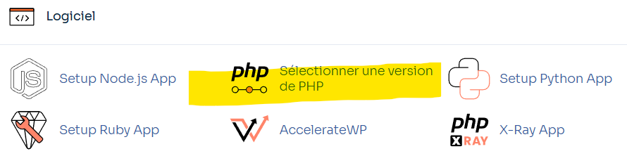 Pour Définir l’heure locale sur CPanel, il faut aller dans la section logiciel, pour accéder au choix de version PHP: Sélectionnez une version de PHP (PHP Selector) puis dans Options et rentrer dans le champ date.timezone :